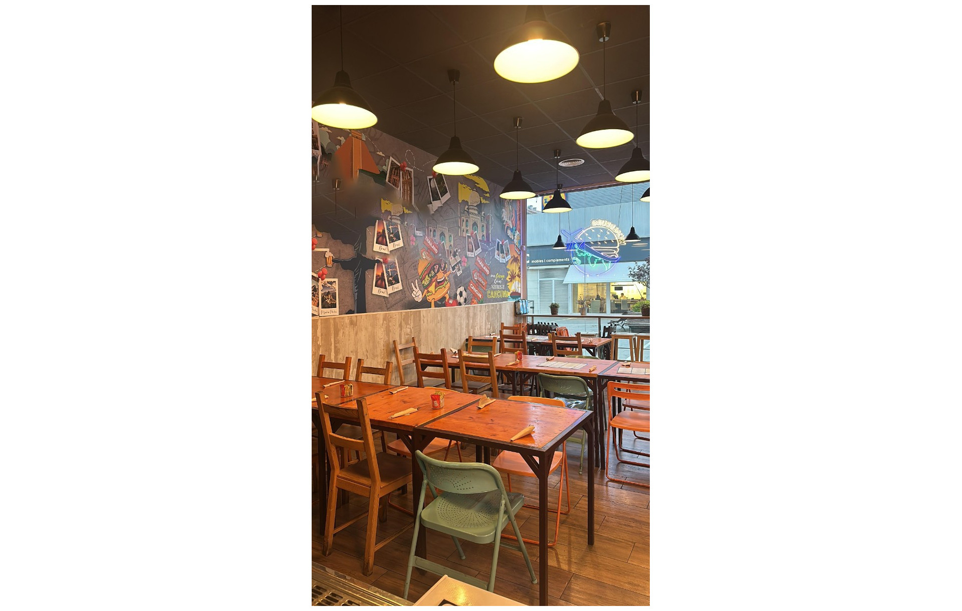 Con un local de 50 m2 para 30 comensales en su interior, una espectacular terraza privada para más de 10 mesas al aire libre, y una terraza interior para los días de lluvia. Dispone de aire acondicionado y calefacción, y los baños en el mismo centro comercial, como así también el estacionamiento gratuito.