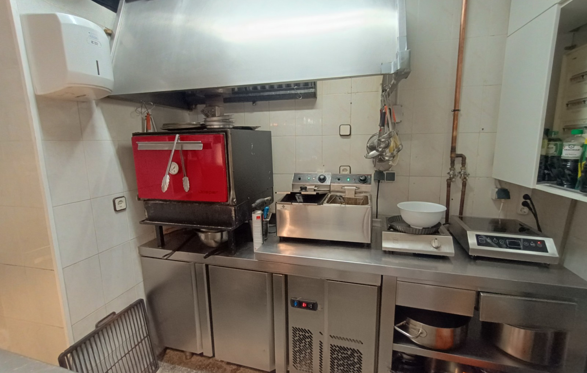 La cocina se entrega completamente equipada, lista para continuar con la actividad de restaurante sin necesidad de inversión adicional. Entre su equipamiento profesional destacan, freidoras, neveras y mobiliario en perfecto estado. El espacio interior está distribuido de manera funcional, permitiendo optimizar los flujos de trabajo y garantizar una operativa eficiente.