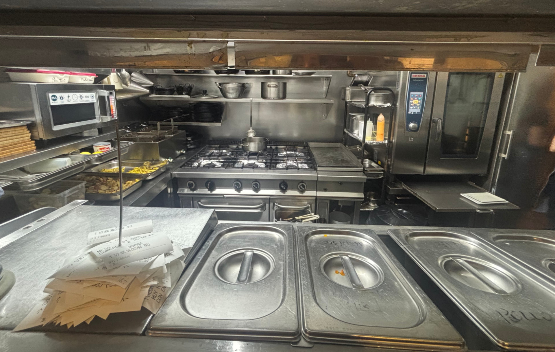 La cocina está completamente equipada, lista para iniciar la actividad desde el primer día: dispone de 6 fogones, plancha, campana extractora, neveras, congeladores y todo el equipamiento profesional necesario.