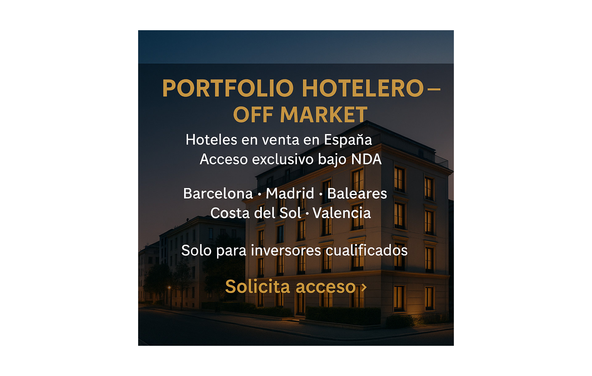 Si estás interesado en la venta de hoteles en Málaga o deseas recibir oportunidades exclusivas en toda España, solicita acceso privado a través de nuestro formulario.