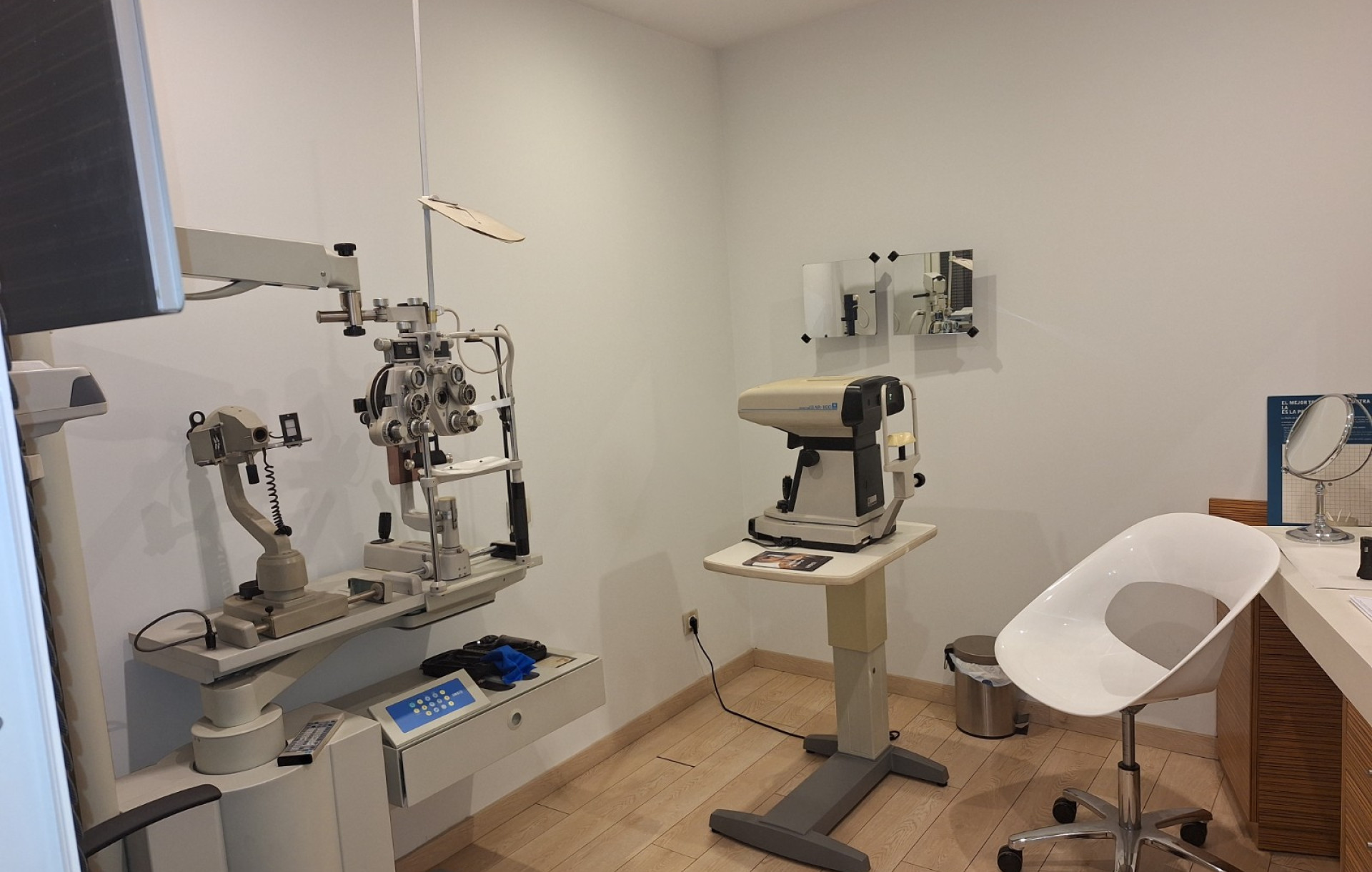 Espaciosa y luminosa sala de atención al cliente y gabinete de refracción totalmente equipado, lista para continuar la actividad sin necesidad de reformas.