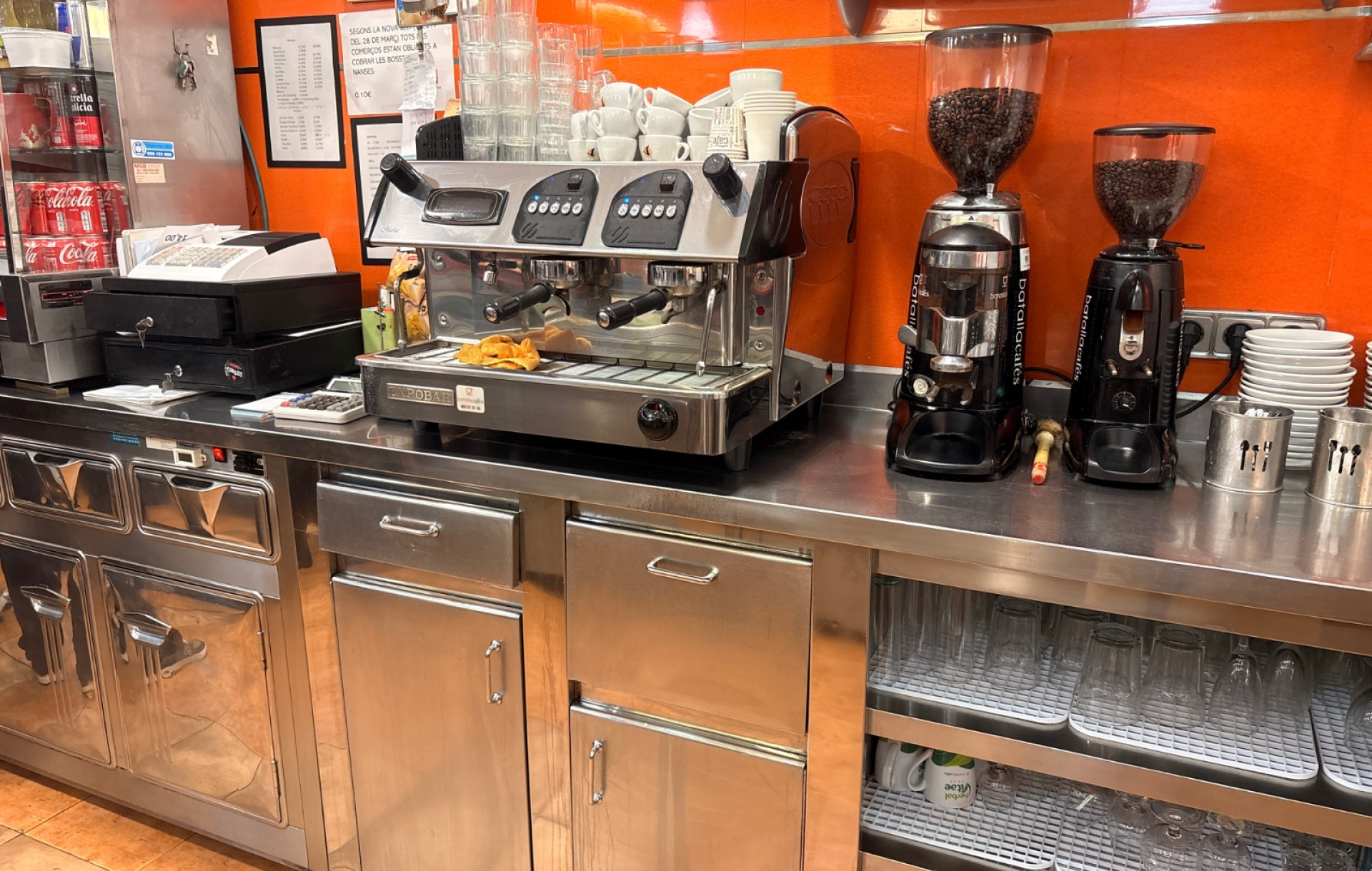 El espacio está equipado con una cocina con salida de humos, equipada para dar un servicio completo. Destaca una barra amplia y funcional, ideal para trabajar con comodidad durante todo el servicio. Esta zona permite realizar preparaciones, atención al cliente o incluso incorporar un servicio de bebidas ágil y eficiente, optimizando la operativa diaria del negocio.