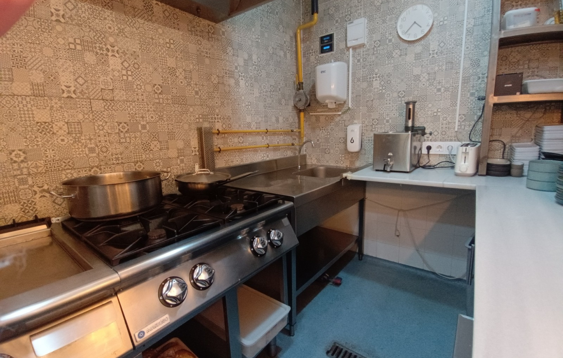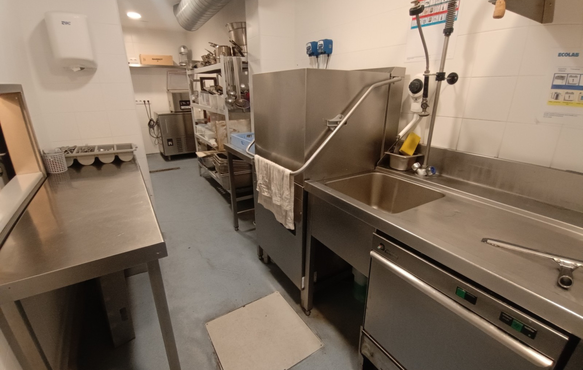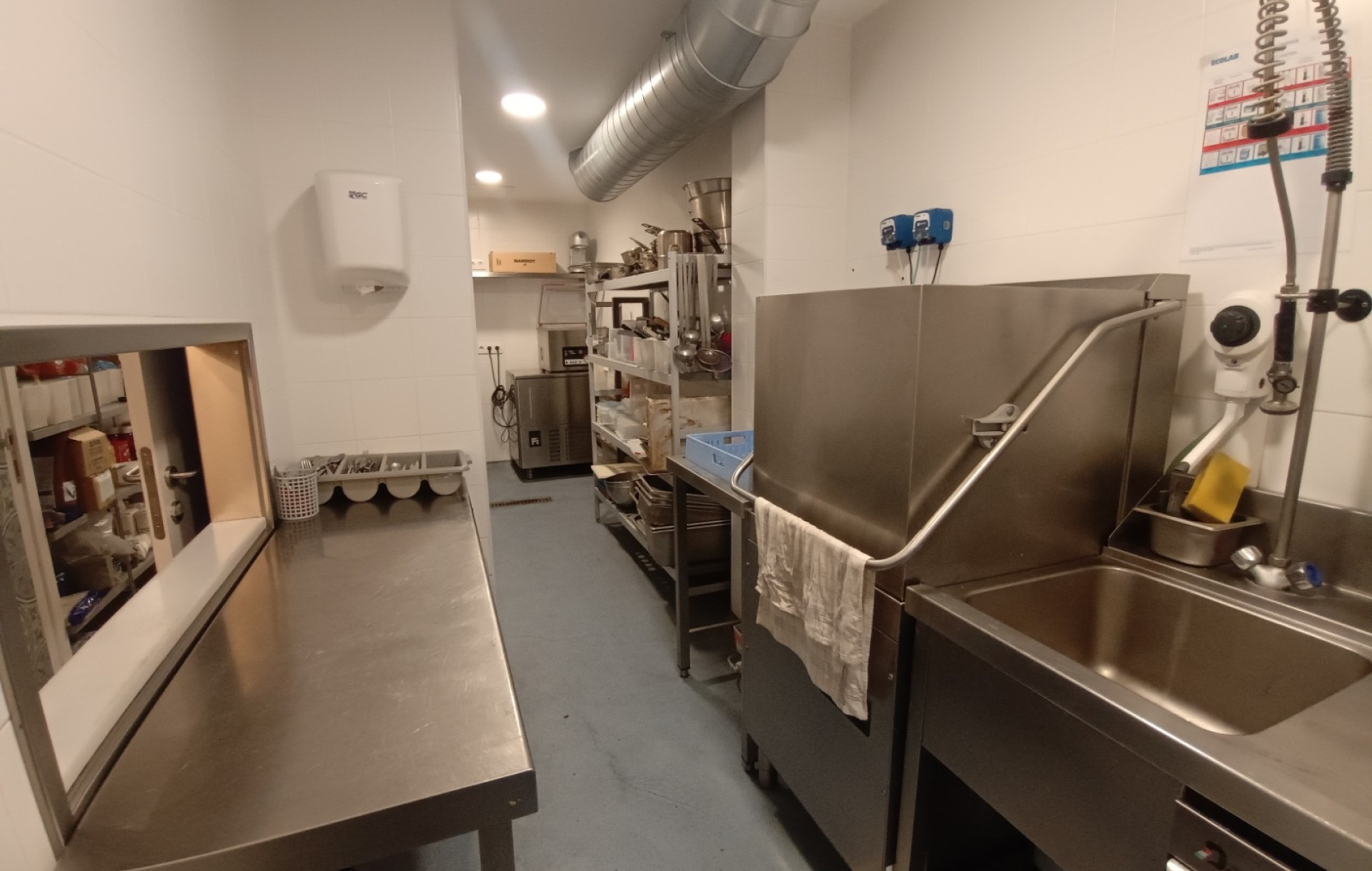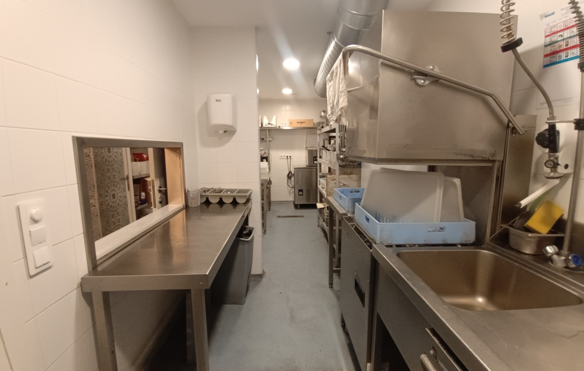 La cocina se encuentra perfectamente equipada con maquinaria de alta gama, incluyendo horno My Chef, abatidor, lavavajillas de torre industrial y otro lavavajillas específico para cristalería, descalcificador, además de congeladores y neveras profesionales. Todo el equipamiento permite iniciar la actividad de inmediato sin necesidad de realizar inversiones adicionales.