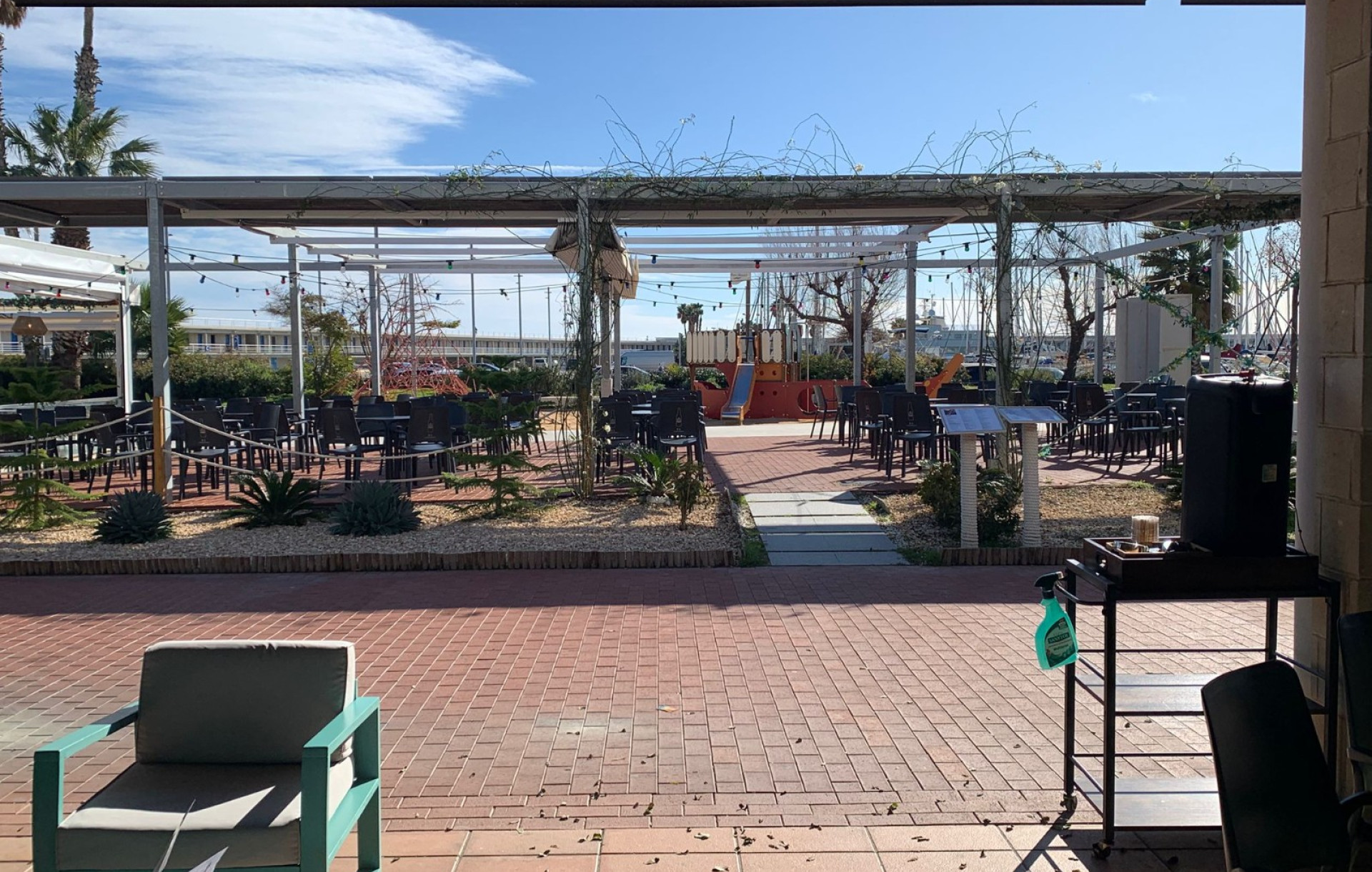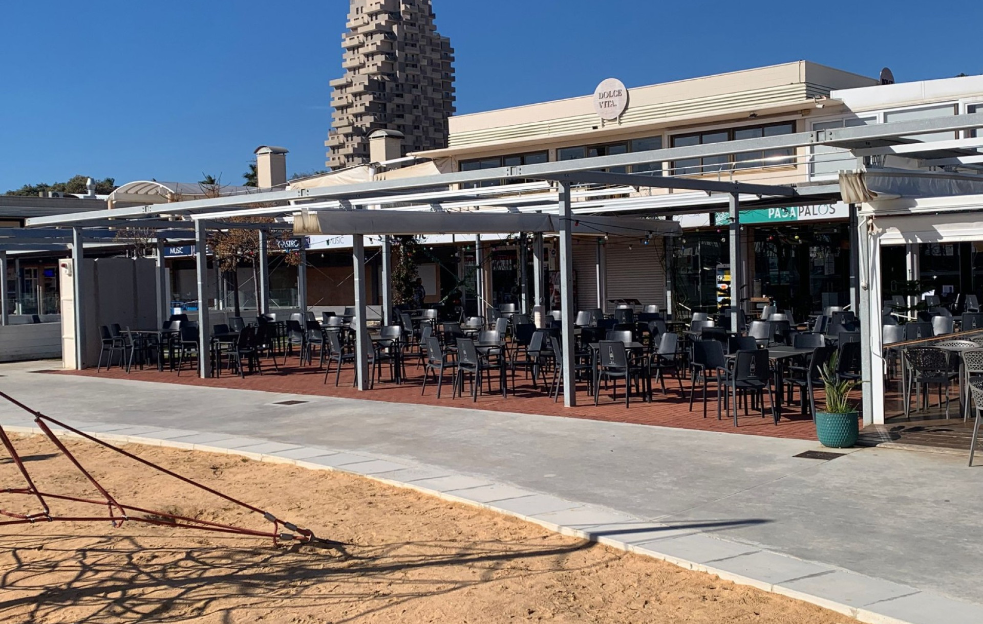 Ubicado en un punto estratégico, junto a la plaza infantil y el parking principal, y con impresionantes vistas a la marina, lo que garantiza un flujo constante de público durante todo el año.