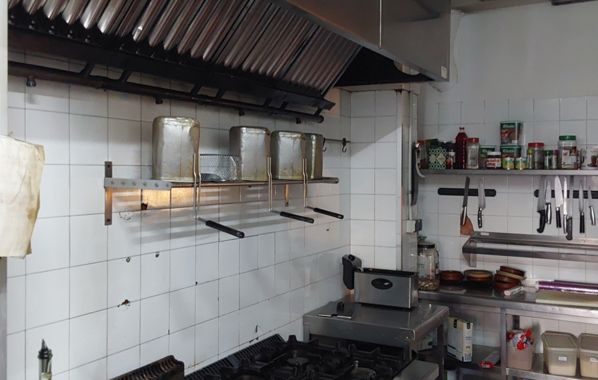 Está en perfecto estado, y completamente equipado, para su funcionamiento cuenta con ; 1 horno de piedra para pizzas ,1 mesa de trabajo de acero inoxidable de 1'5 m ,1 cortadora de embutido,2 neveras verticales,1 mesa de trabajo de acero inoxidable de 2 '5 m ,1 lavavajillas,1 microondas,1 salamandra ,1 nevera vertical de dos puertas,1 expositora para comida de frío,1 fuente de agua,1 nevera botellero de dos puertas,1 amasadora,1 nevera botellero de dos puertas ,1 TPV ,1 mueble cafetero... todo el mobiliario y menaje . Tiene 2 baños y uno de ellos es adaptado. Se puede comenzar a trabajar desde el primer día.