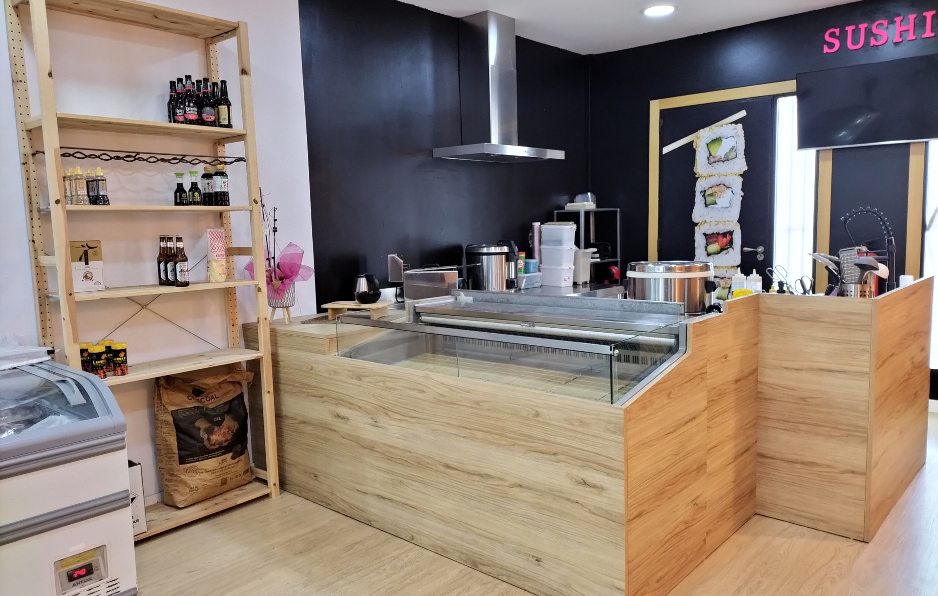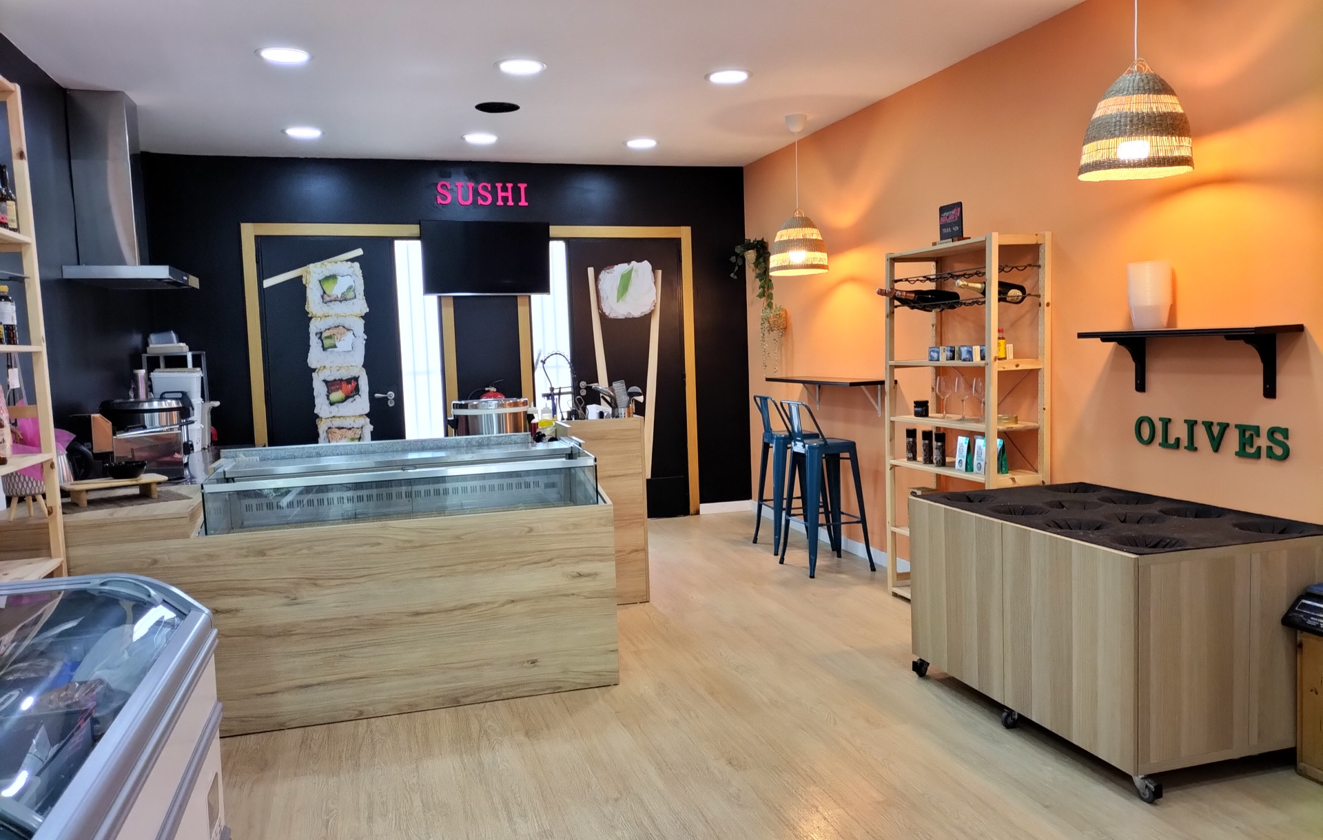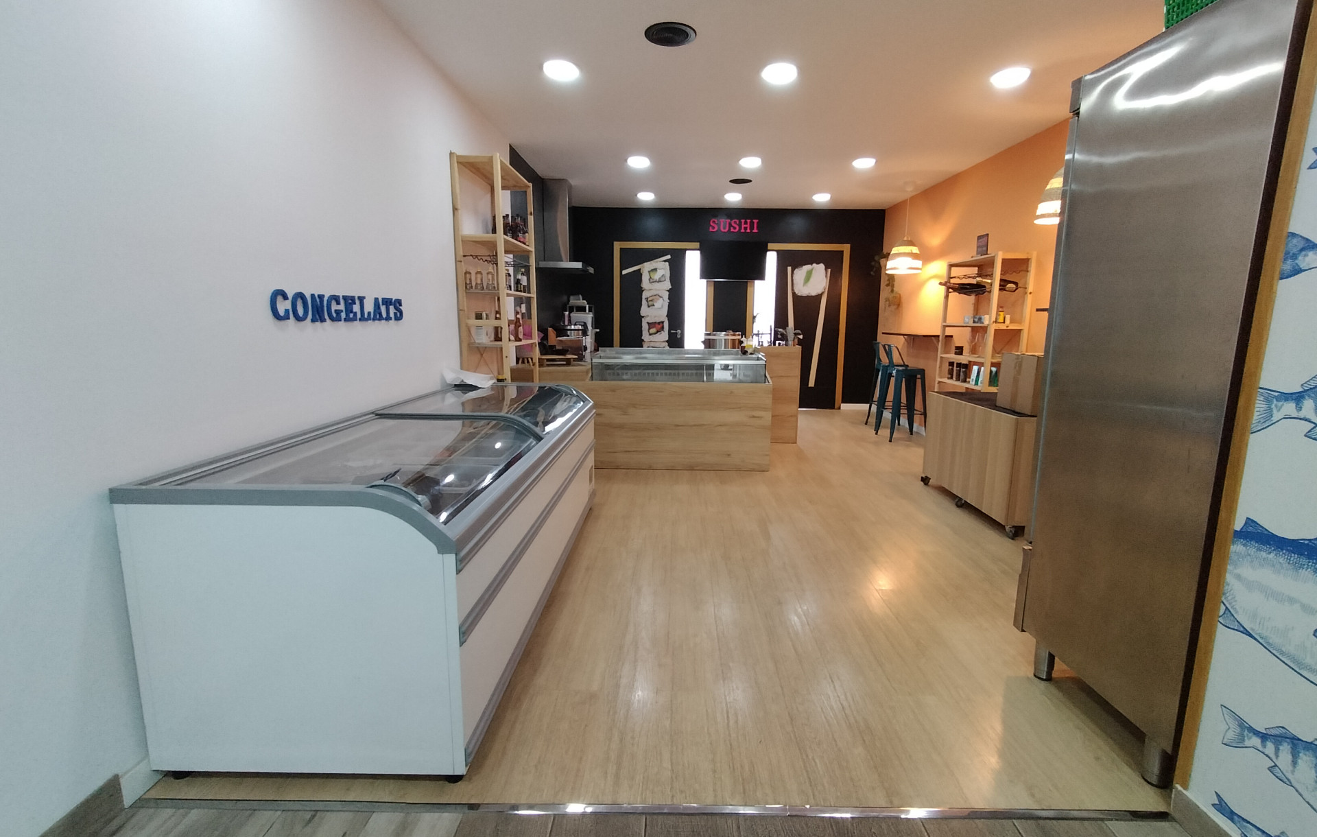 El local, con una amplia puerta en su fachada y 80 m² útiles, te ofrece un espacio diáfano y accesible a pie de calle. Recientemente reformado, cuenta con una amplia zona de venta donde los clientes pueden disfrutar de una experiencia visual del obrador de sushi y un aseo para mayor comodidad. Además, el establecimiento viene completamente equipado para llevar a cabo ambas actividades, lo que te permite comenzar a trabajar desde el primer día sin contratiempos.
