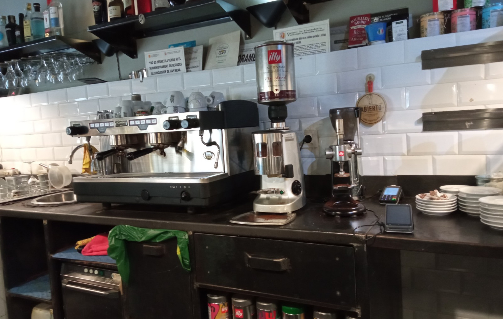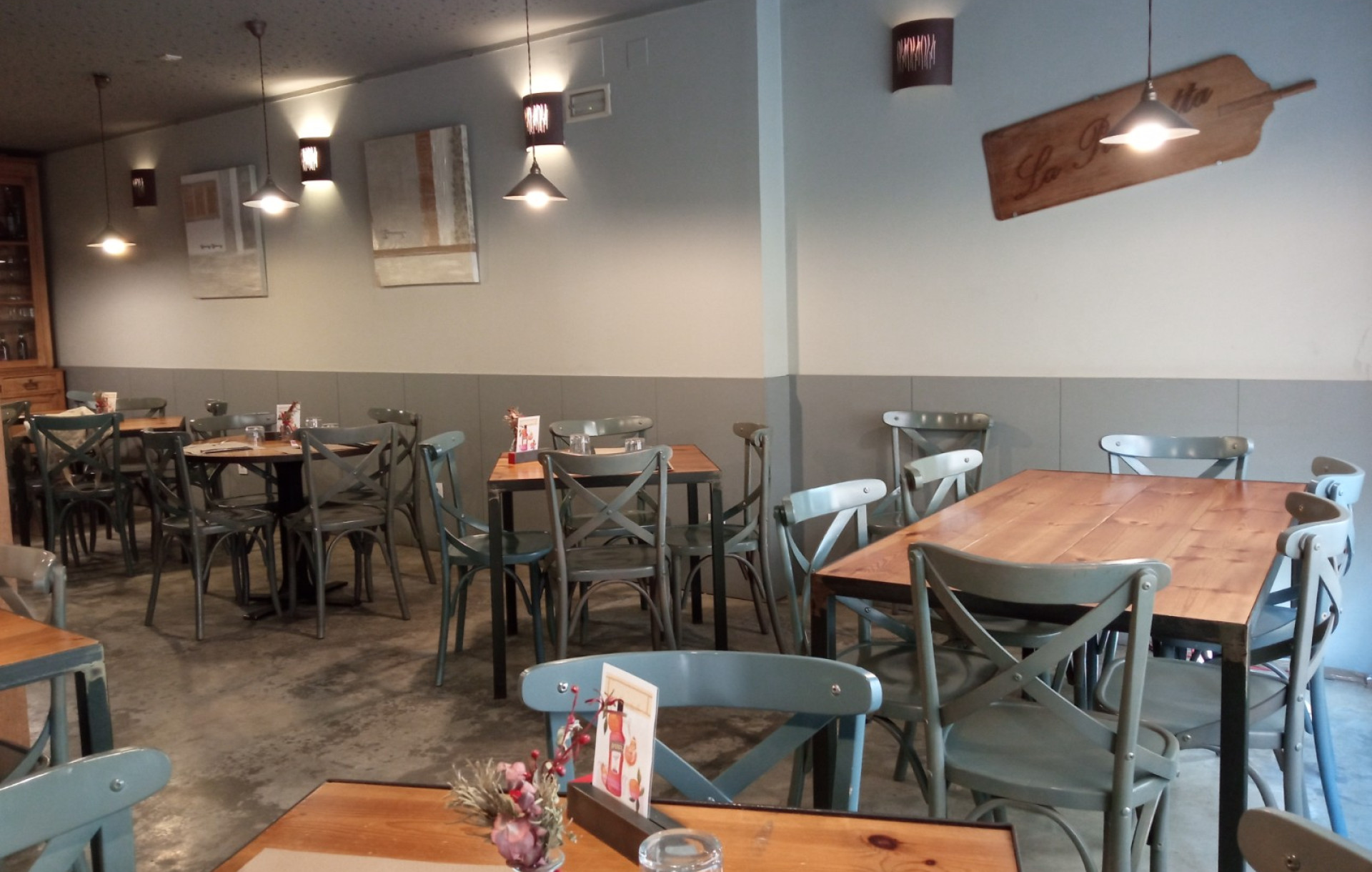 Al entrar en el local nos encontramos una amplia Barra que nos da entrada a un acogedor comedor(insonorizado). El local dispone de cocina con salida de humos completamente equipada, dos baños adaptados y un pequeño almacén. El local esta equipado con 4 Splits, sistema de filtrado de agua, maquina propia de café, nevera de vinos, un espectacular horno eléctrico de Pizzas, 3 neveras, 1 congelador...etc. Un restaurante completamente equipado, en funcionamiento y preparado para continuar funcionando.