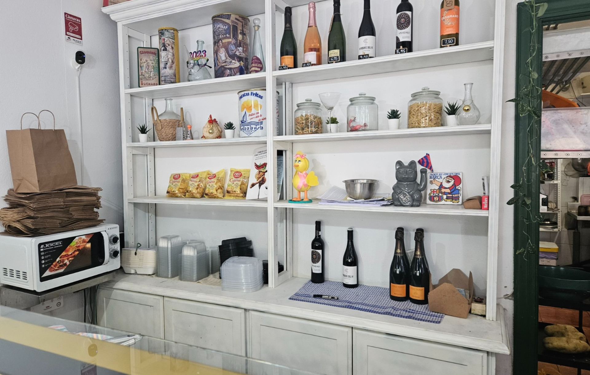 El establecimiento, nuevo y en perfectas condiciones de uso, abarca aproximadamente 55 m2 con una amplia fachada de unos 3.5 metros lineales. Cuenta con un punto de venta espacioso con mostrador y nevera de exposición, directamente conectado con una cocina a la vista donde los clientes pueden apreciar la preparación de los productos.