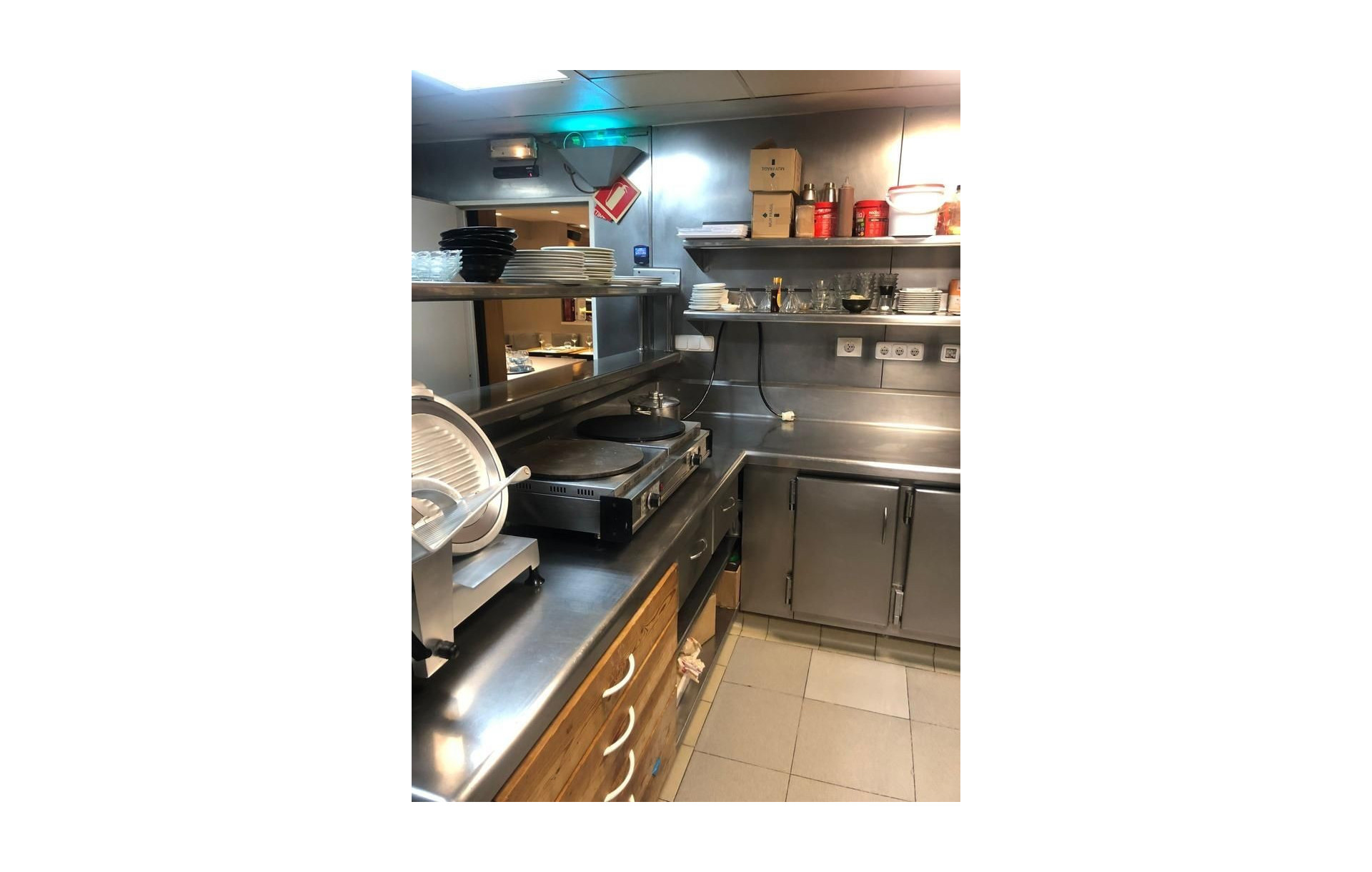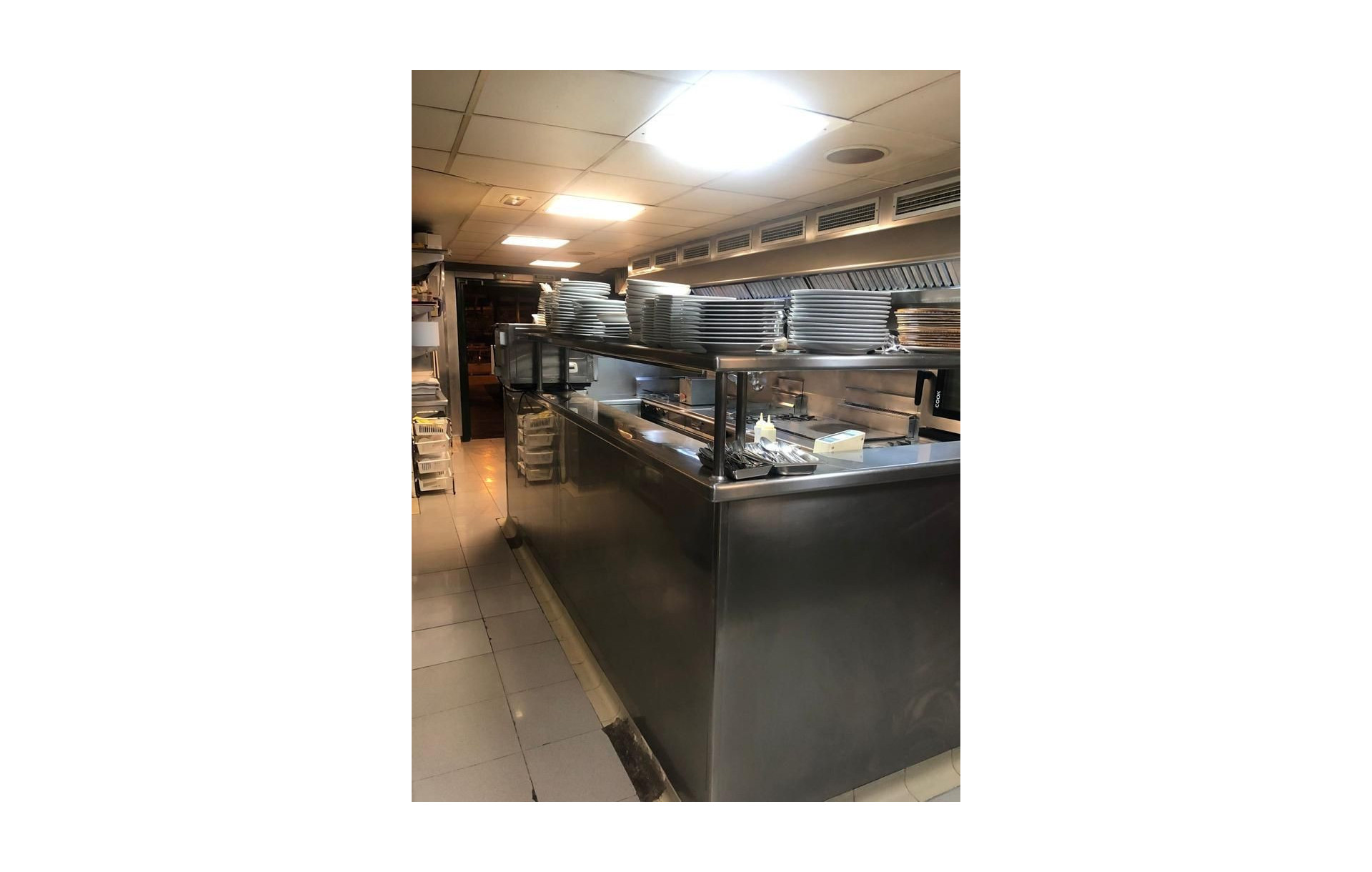 Dos cocinas: una amplia y moderna, otra más pequeña detrás de la barra, ambas con salidas de humos